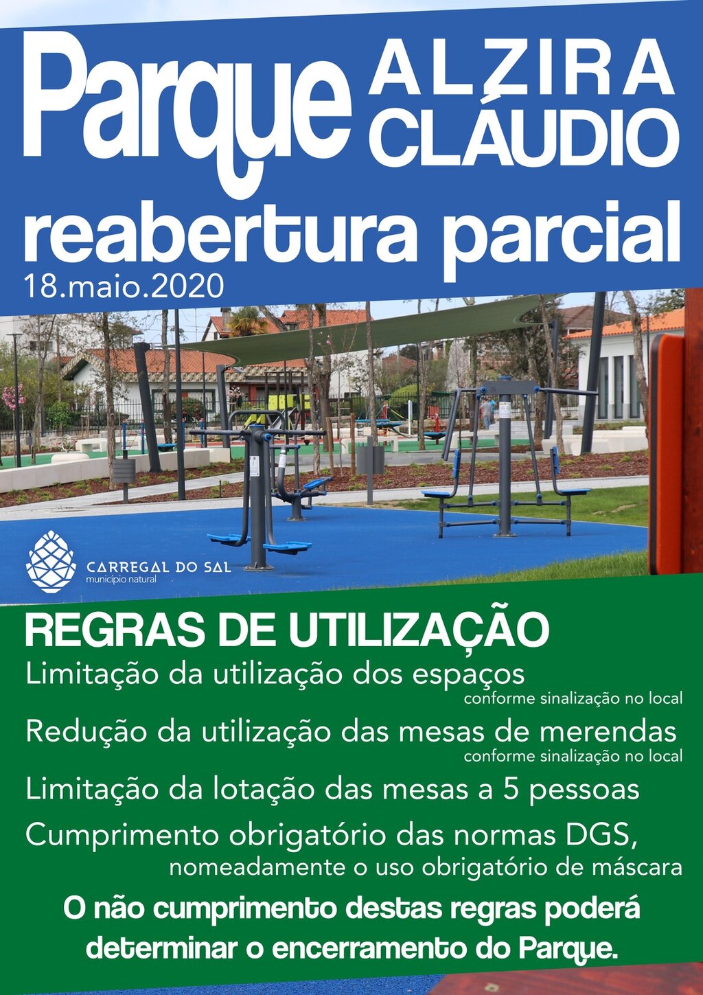 Tendo em conta as orientações das Autoridades competentes, o Parque Alzira Cláudio está, a partir de hoje, parcialmente aberto.