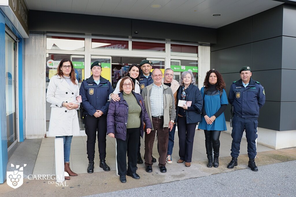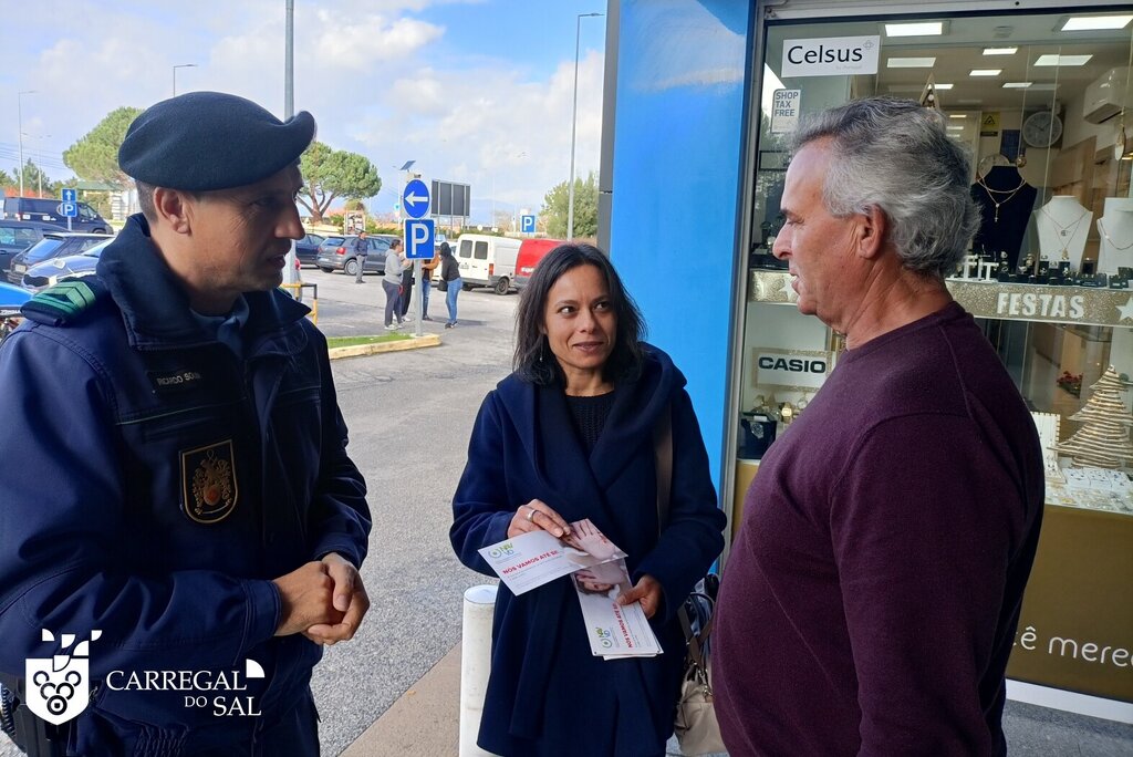Durante a tarde, contámos com a colaboração de dois alunos da USCSAL – Universidade Sénior de Carregal do Sal e alertámos também para a violência contra idosos. Através do recurso à dramatização, chamámos a atenção para um crime que pode igualmente revestir diversas formas, e uma vez mais sensibilizámos os clientes à saída dos respetivos estabelecimentos.
