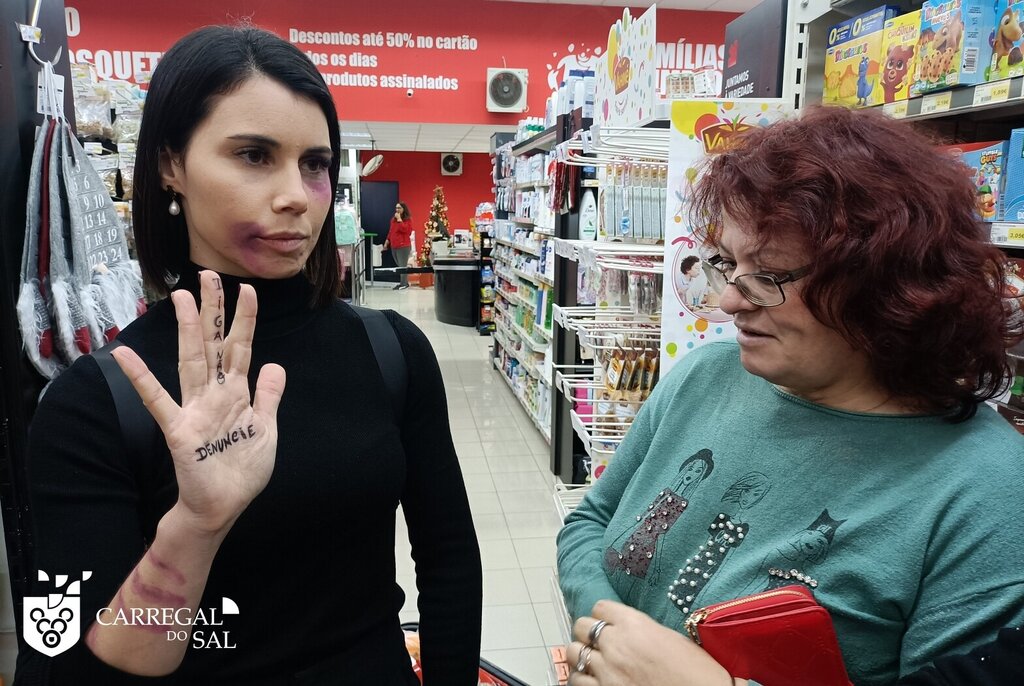 E a 25 de novembro, de forma inédita, voluntárias do Banco Local de Voluntariado de Carregal do Sal caraterizaram-se a rigor e encarnaram o papel de vítimas… em supermercados da vila sede e apresentaram-se caraterizadas com nódoas negras e arranhões que chamaram a atenção dos clientes.