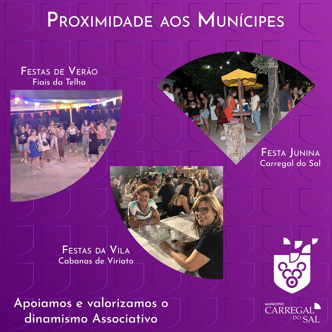 Primeiro em Cabanas de Viriato, nas Festas da Vila, promovidas pela Associação com o mesmo nome e que incluíram o Carnaval de Verão, pela Associação do Carnaval da localidade; imediatamente a seguir em Fiais da Telha, nas Festas de Verão organizadas pela Associação Recreativa e Desportiva da localidade, as duas representantes dos órgãos do Município e, no último caso, o Presidente da Câmara Municipal comungaram das vivências festivas de cada uma das localidades.