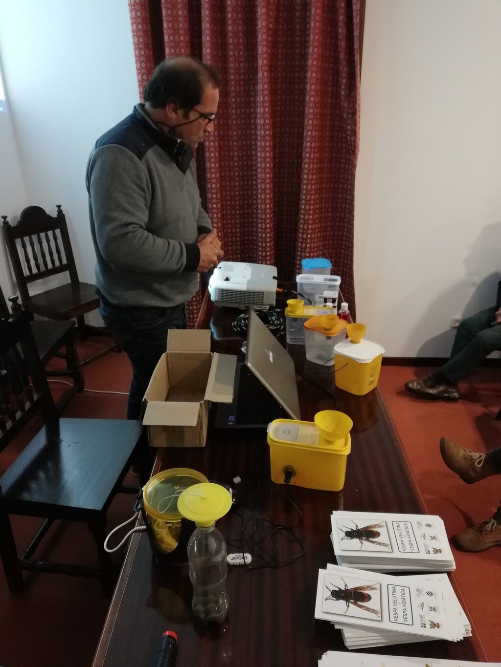 Conduzidas pelo Veterinário Municipal, Paulo Jaime Matos e realizadas com a colaboração de Carlos Filipe, da Associação de Aeromodelismo do Centro de Portugal, as sessões começaram com a alusão à origem da Vespa Asiática (China) e contextualização da sua chegada a Portugal, com os consequentes e nefastos constrangimentos de tal constatação.