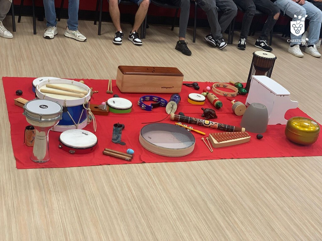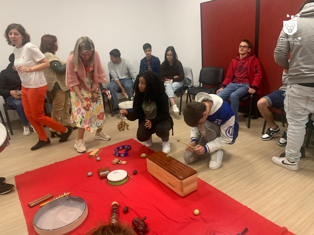 Os jovens também manusearam e exploraram instrumentos musicais e deram asas à criação artística, num trabalho conjunto.