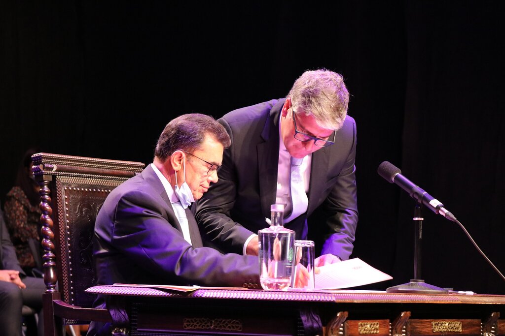 Referiu-se ainda aos eleitos que com ele integraram a Assembleia Municipal expressando o seu agradecimento pelo trabalho realizado e dirigiu-se aos que iriam assumir funções para lhes desejar os maiores sucessos e êxitos lembrando que a divergência de perspetivas e o confronto de opiniões podem enriquecer as decisões “desde que o debate de ideias seja feito com respeito, com dignidade, com elevação.”