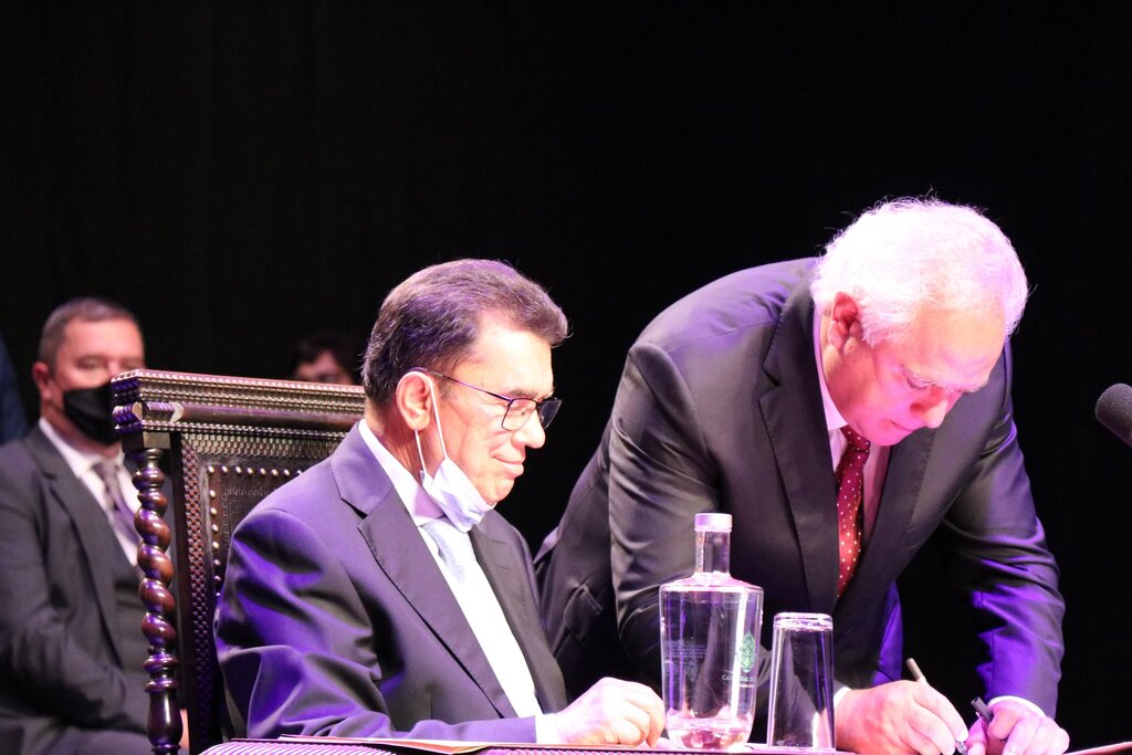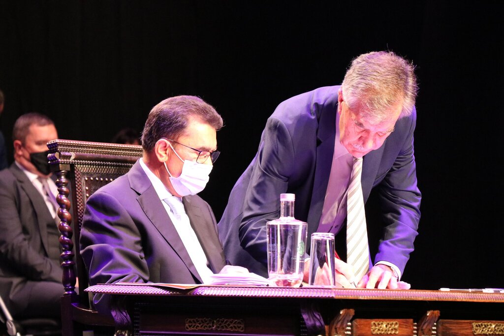 Dirigindo-se ao novo Presidente da Câmara eleito, Paulo Catalino, felicitou-o pelos resultados obtidos nas eleições de 26 de setembro e, por isso, sublinhou, “inicia o mandato com legitimidade reforçada”. Lembrou que “criou expetativas que agora naturalmente os nossos munícipes ambicionam ver concretizadas.” Desejou-lhe um mandato de realizações e sucessos, com a concretização do que os eleitores sufragaram, com um bom aproveitamento dos fundos comunitários e com o lançamento de projetos e estratégias que desenvolvam projetem o nosso Concelho”, para o que vai contar com a colaboração dos vereadores eleitos.
