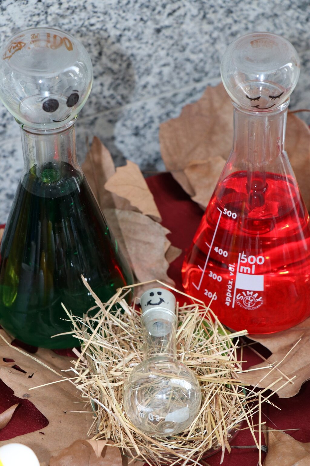 Feito com o recurso a frascos reagentes de vidro, ferro, folhas secas e outros materiais, o presépio foi concebido pelos alunos, no âmbito do projeto Ciência Viva, do Agrupamento de Escolas de Carregal do Sal, de que a Câmara Municipal é parceira.