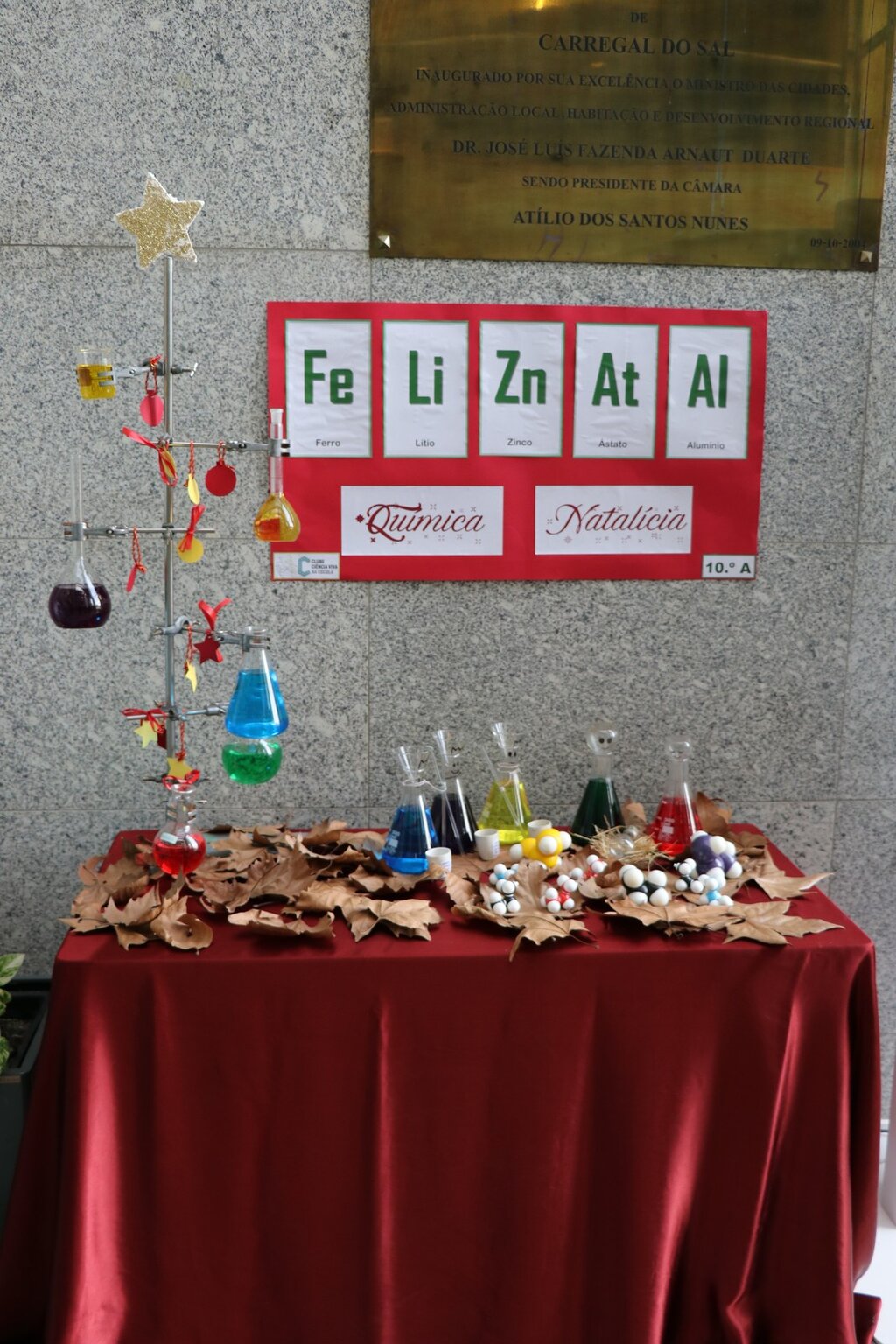 E hoje, dia 18 de dezembro, alunos e professora da disciplina de Física deslocaram-se à Câmara Municipal, arregaçaram as mangas e montaram o dito presépio. Um cartão de boas vindas e Feliz Natal escrito com o recurso a símbolos químicos, que foi recebido ao vivo pelo vice-presidente da Autarquia, José Sousa Battista, e que partilhamos com todos vós.