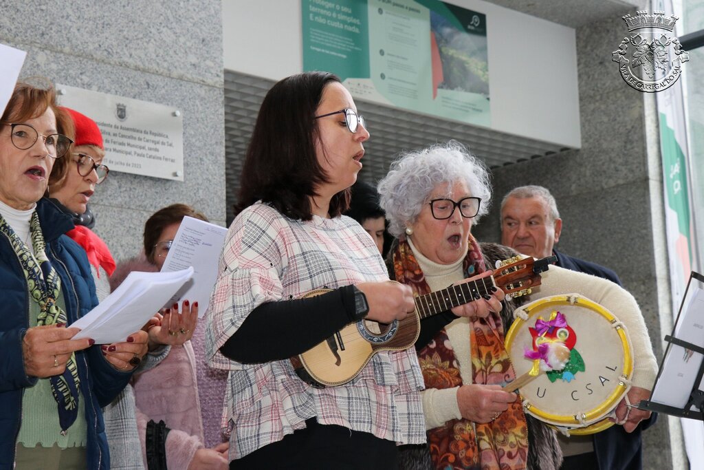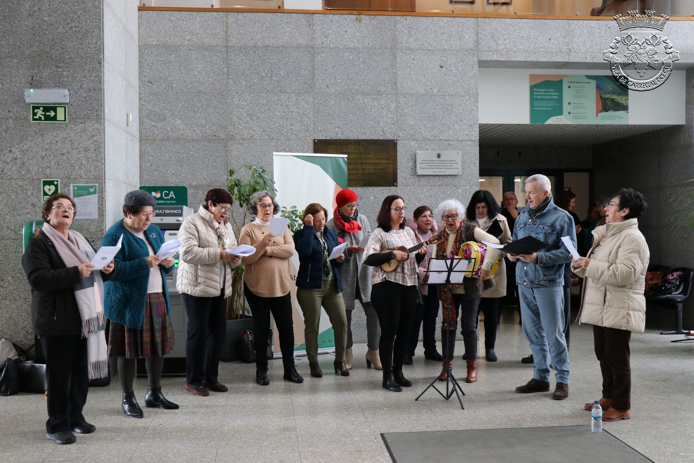 O grupo deslocou-se ao edifício da Câmara, cantou, tocou e encantou os trabalhadores dos respetivos serviços e Munícipes que naquele momento se encontravam nas instalações.