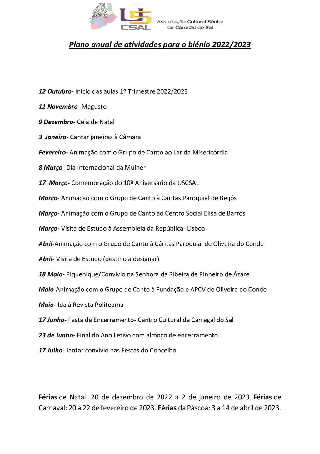 Foi no passado dia 04 de outubro de 2022, pelas 16 horas, que na Sede Social da USCSAL-Associação Cultural Sénior de Carregal do Sal, tomaram posse os novos órgãos sociais para gerir os destinos desta Universidade Sénior, no biénio de 2022-2024.