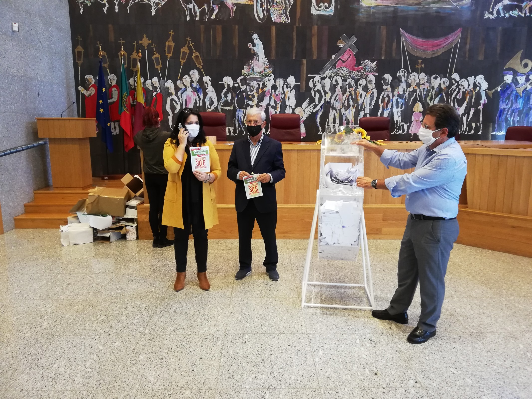 A iniciativa foi transmitida em direto e online e, à medida que iam sendo extraídos os cupões, a Vereadora da Câmara Municipal, Ana Cristina Borges, contactava os felizardos notificando-os do prémio atribuído.