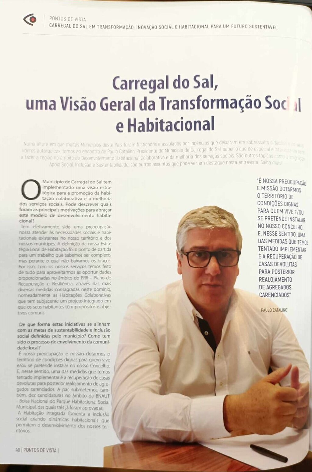 Em entrevista à Revista Pontos de Vista, o Presidente da Câmara Municipal de Carregal do Sal, Paulo Catalino Ferraz, apresentou as linhas genéricas da transformação social e habitacional arquitetada para o Concelho. Paulo Catalino Ferraz assume que “todas as intervenções e investimentos feitos em prol dos nossos Munícipes, são sempre mais valias".