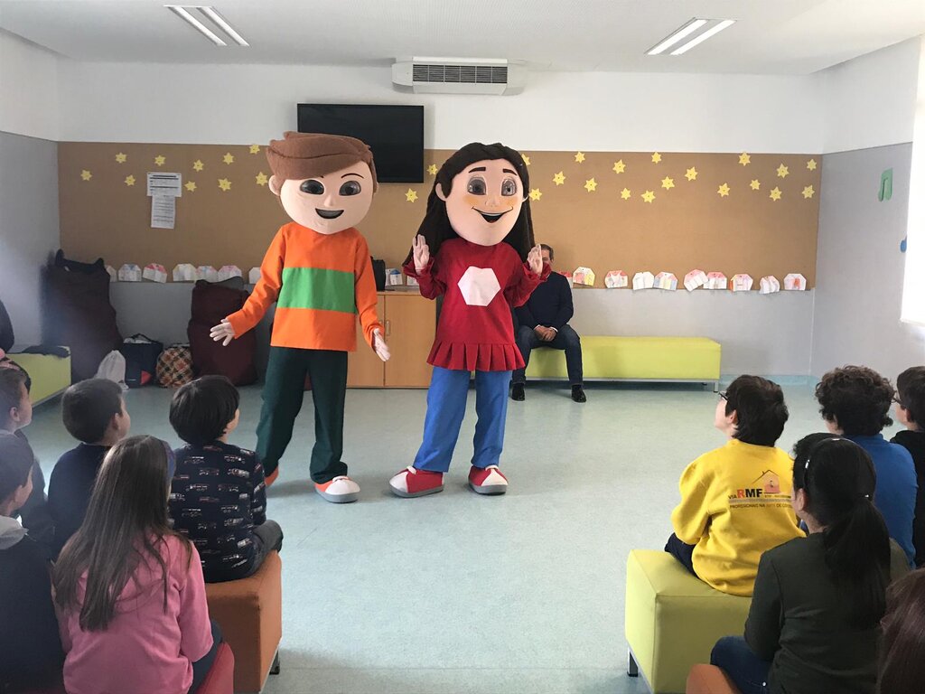 Após a explicação do projeto, o Gaspar e a Maria (mascotes oficiais) irromperam pela sala em efusiva interação com os alunos que os receberam de forma entusiástica.