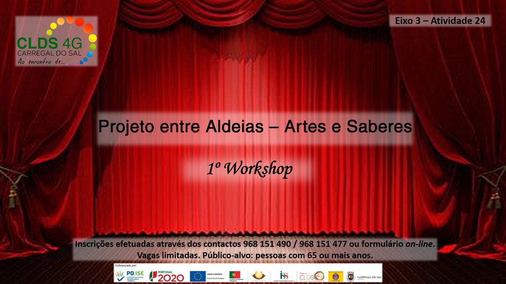 Trata-se de um Workshop onde serão desenvolvidas atividades culturais e artísticas de combate ao isolamento social da população com 65 ou mais anos. O objetivo primordial desta atividade é dinamizar nas diversas aldeias do concelho, pequenas congregações de convívio e estimulação psicossocial, que permitam ainda a troca de experiências e saberes, bem como a aprendizagem de novas artes.