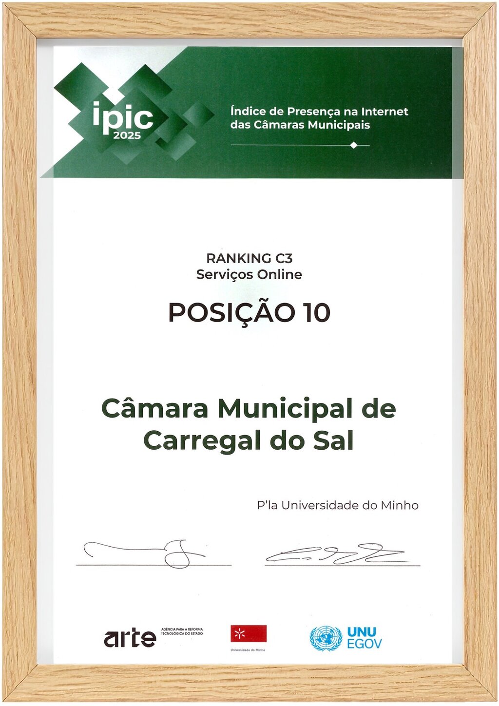 A cerimónia de entrega decorreu na tarde do dia 20 de abril, em Guimarães, no âmbito da apresentação do 13.º estudo IPIC, promovido pela Agência para a Reforma Tecnológica do Estado (ARTE), em colaboração com a Universidade do Minho e a Unidade Operacional em Governação Eletrónica da Universidade das Nações Unidas (UNU-EGOV), contando com a presença da vice-presidente da Câmara Municipal de Carregal do Sal, Izabel Azevedo.