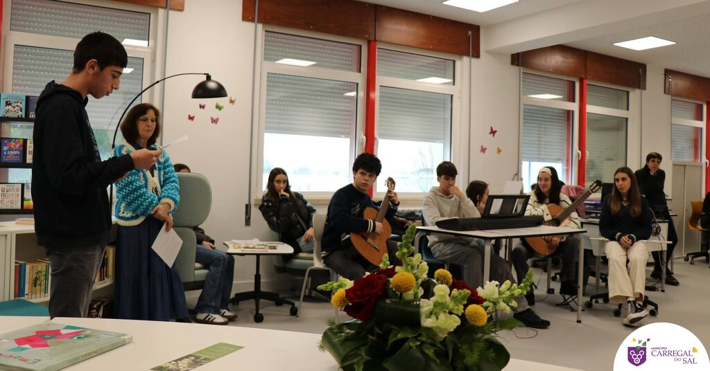 A sessão foi conduzida pela bibliotecária Célia Cortez e contou com a participação ativa de alunos do 9.º A e do 11.º B, que dinamizaram momentos de declamação de poesia, leitura de textos e um momento musical, enriquecendo simbolicamente a cerimónia e reforçando a centralidade da biblioteca na vida escolar.