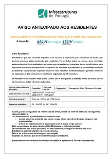 Informação à População: Desmonte de Rocha com recurso a explosivos - Município de Carregal do Sal - "Empreitada Modernização LBA, Troço STA Comba Dão - Mangualde"