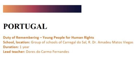 Projeto “Dever de Memória” - Jovens pelos Direitos Humanos do Agrupamento de Escolas de Carregal do Sal reconhecido pelo TOLI