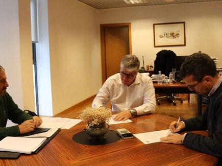 O Presidente da edilidade, Paulo Catalino Ferraz e o representante da empresa AMBIDAG, Lda., Luís Manuel Nunes Almeida Aguiar, ...Conhecer | Notícias -