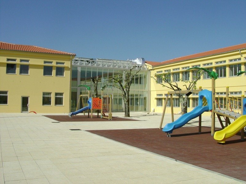 O complexo educativo desenvolveu-se em dois pisos, aproveitando a totalidade das áreas dos edifícios existentes e complementando-os com novas construções contíguas, de forma a articular as necessidades dos vários núcleos funcionais: EB1 e JI.