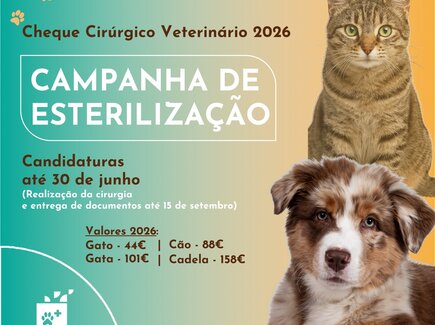 Candidaturas abertas para a Campanha de Esterilização de Animais de Companhia 2026