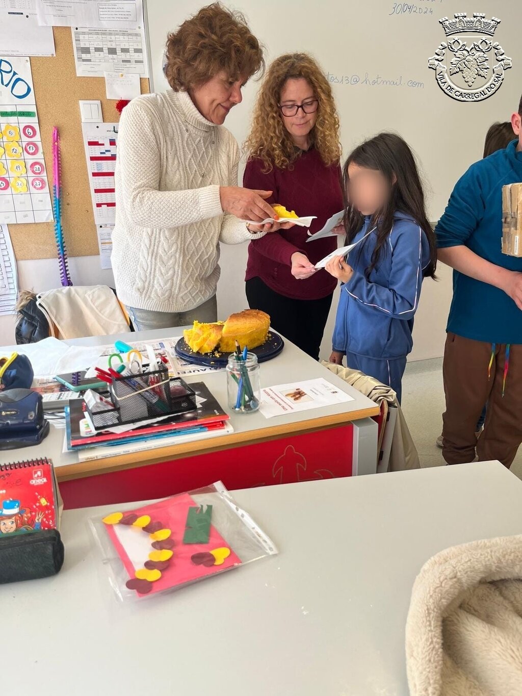 Satisfeita a curiosidade dos mais novos, no final de cada apresentação, Isabel dos Santos presenteou-os com uma fatia do fofo, cheiroso e enxuto “Pão de ló d’avó Arminda”, deliciando-os. A degustação e o desfrutar desta iguaria típica foi motivo de encontro com o património e tradição local, pelo que a autora confiou aos alunos a receita, que o tempo não apagou, a fim de estes a replicarem, desafiando as famílias a reencontrar a cozinha e a mesa como espaço de partilha e amor.