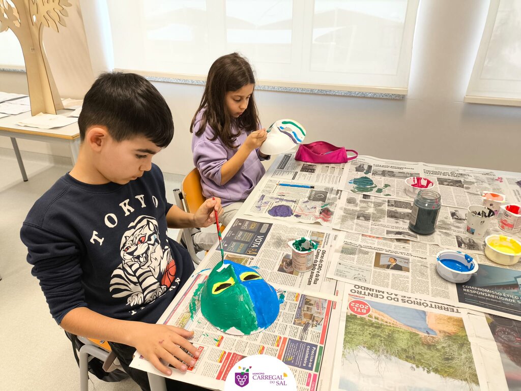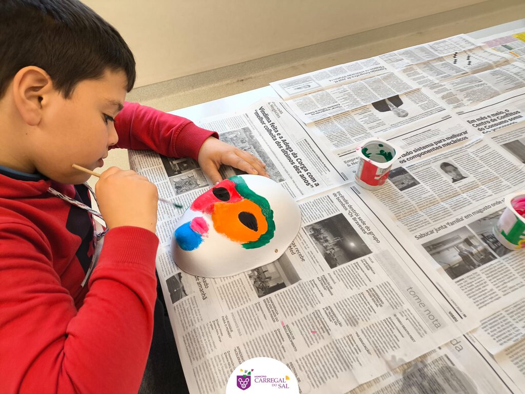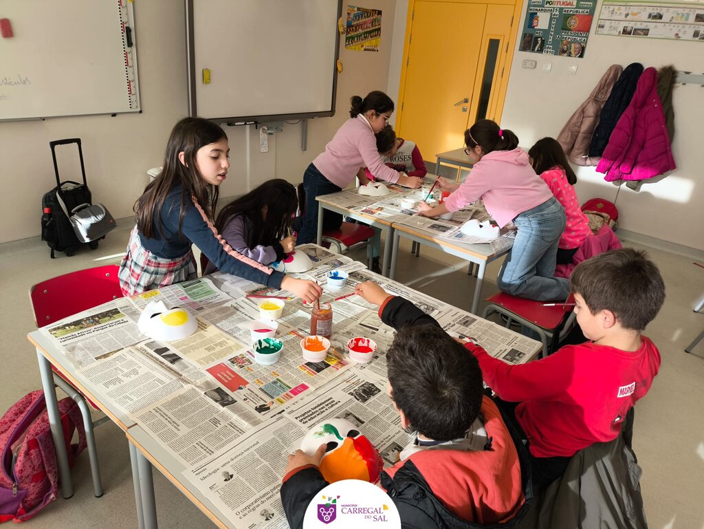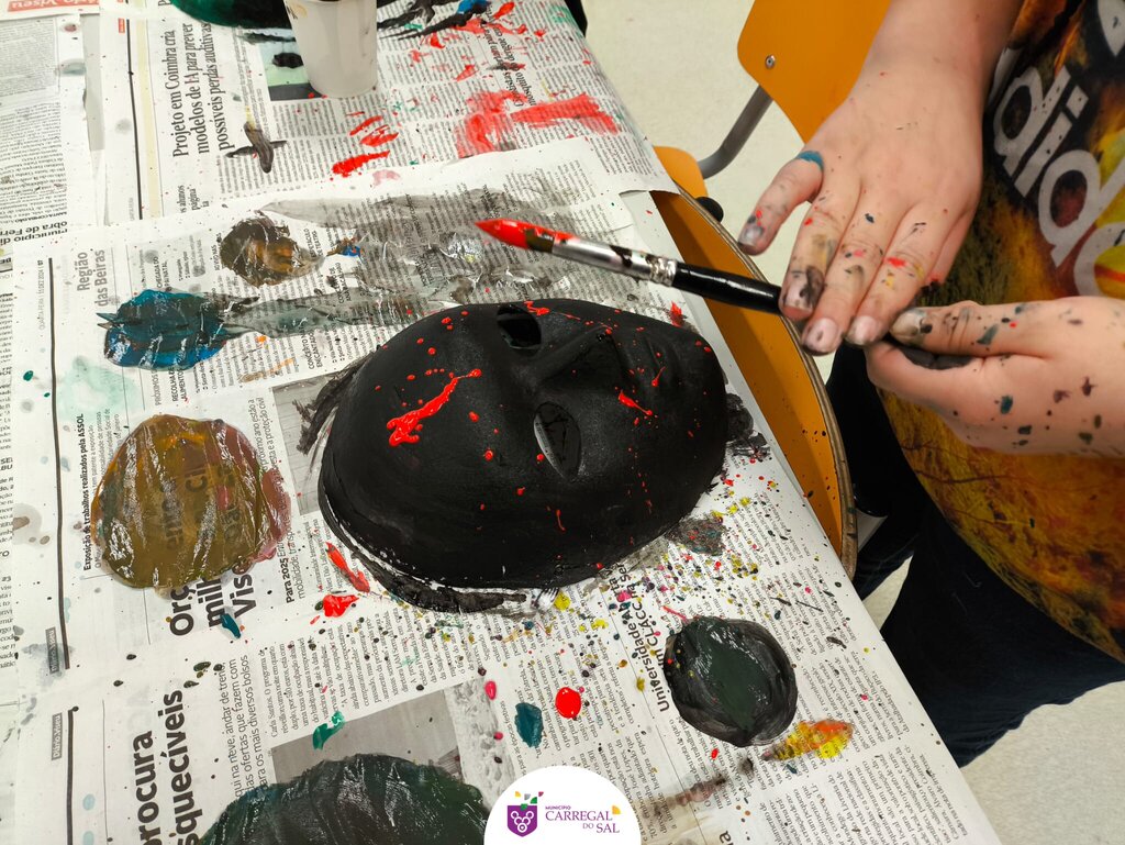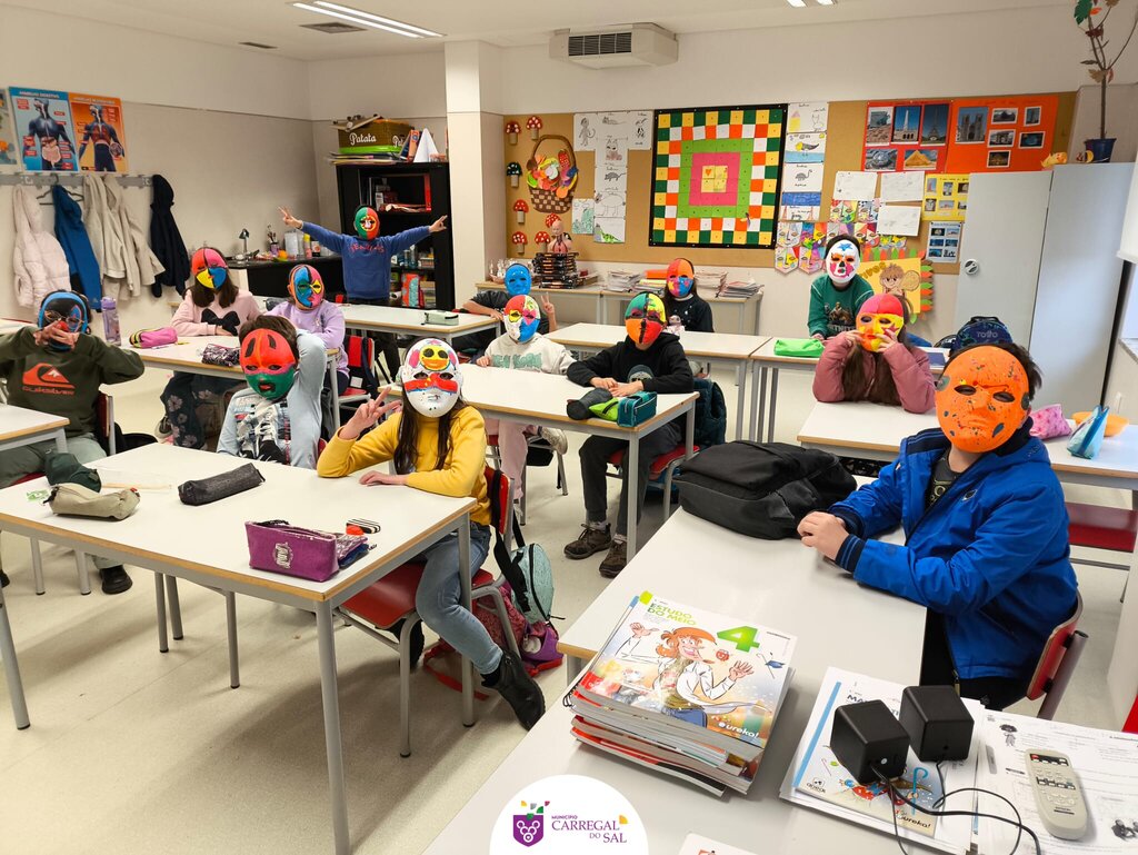 Lembrando a época festiva do Carnaval, os espaços foram decorados com máscaras carnavalescas, elaboradas pelos alunos do 4.º ano de escolaridade, que encheram de cores vibrantes os espaços escolares.