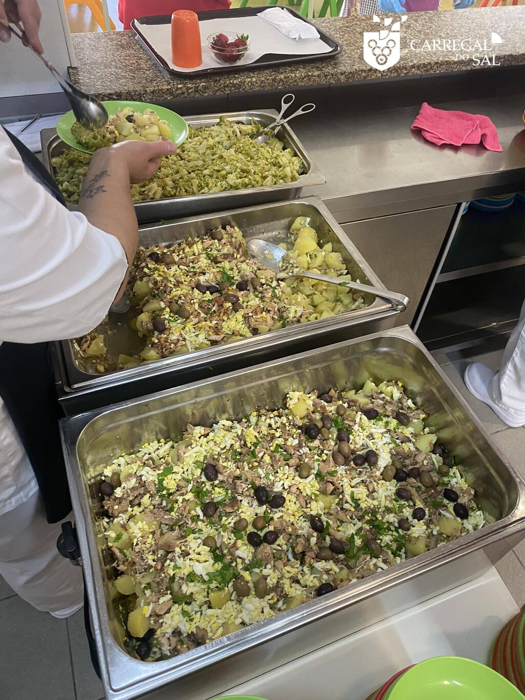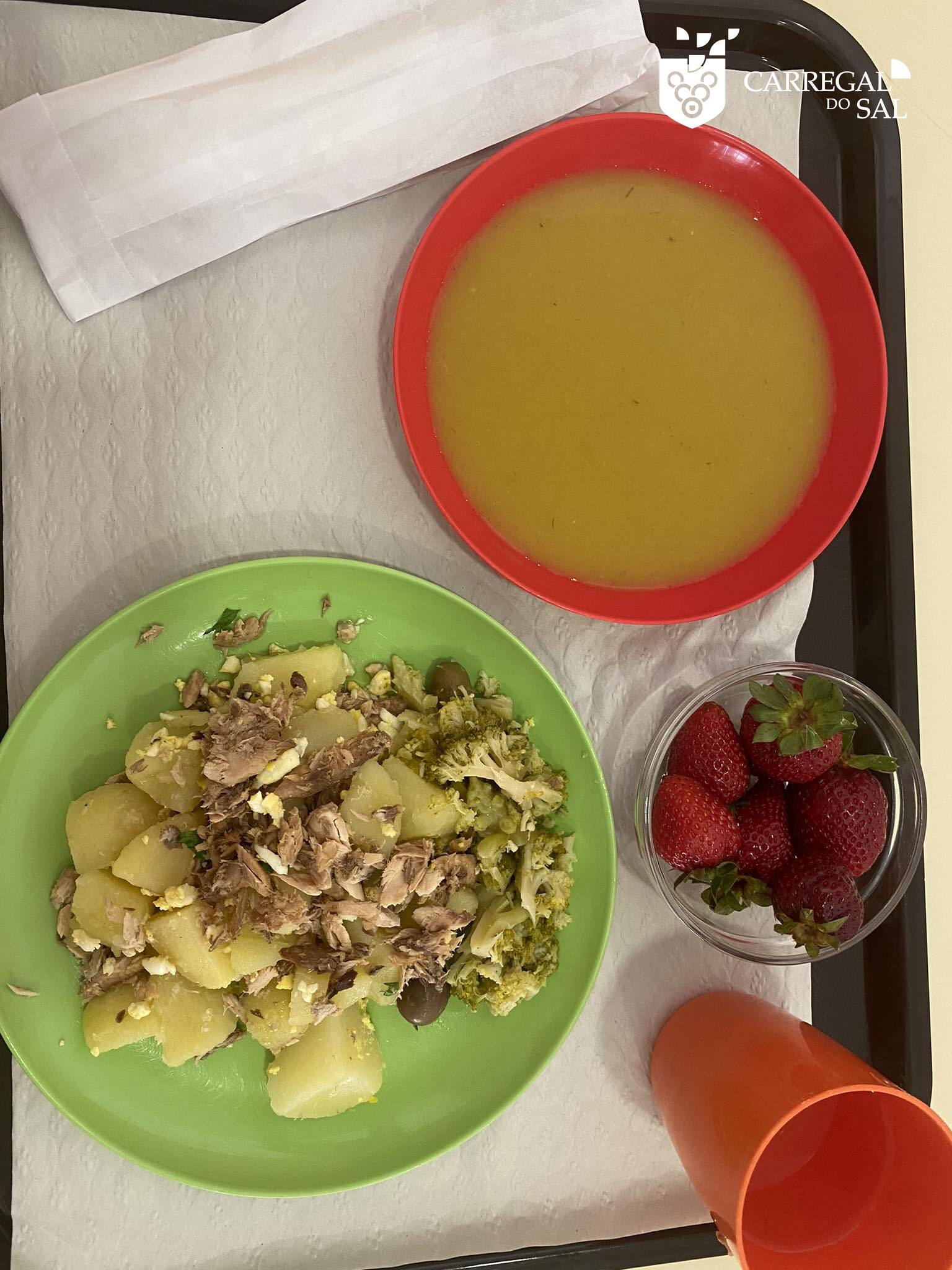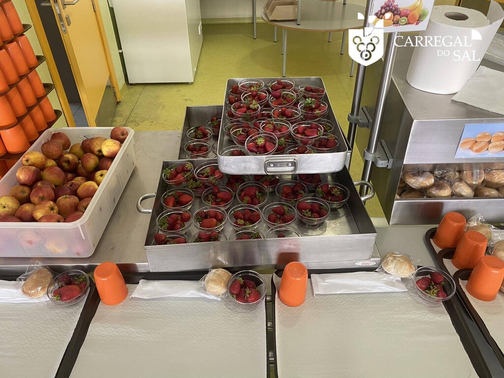 A refeição bio, servida tanto aos alunos do pré-escolar como aos alunos do primeiro ciclo, privilegiou alimentos sazonais e produtos biológicos. O repasto, que englobou sopa de batata doce, abóbora e cenoura; salada de cavala; e morangos, uma fruta doce, fresca, nutritiva e da época, que tem por base a produção local, deleitou as crianças daquela Escola.