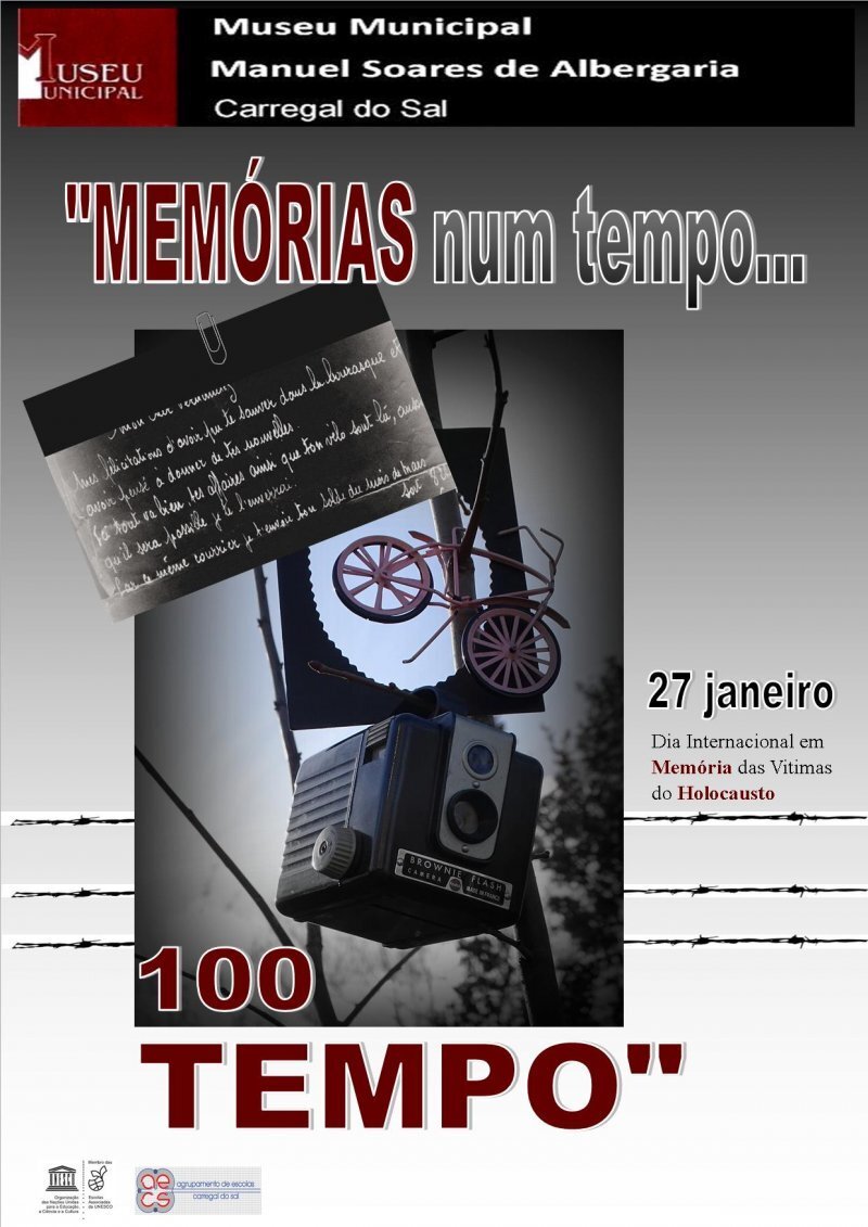 A exposição ”MEMÓRIAS num tempo…100TEMPO” que se encontra no Museu Manuel Soares de Albergaria, de 24 de janeiro a 7 de março, é constituída por uma série de 60 fotografias que contextualiza o tema da 2ª Guerra Mundial e do Holocausto, e que se encontram divididas em 3 tempos históricos distintos: Antes, Durante e Depois.
